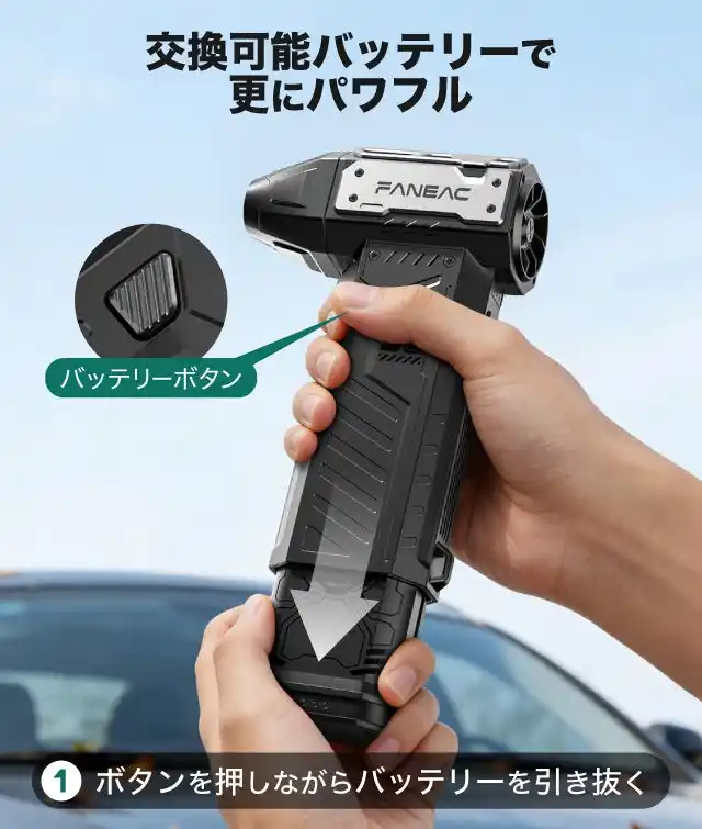 本製品は、最大風速240km/hの強力なエアフローにより、これまで取り切れなかった細部のホコリや洗車後の水滴を吹き飛ばす高性能ツールです。コンパクト設計ながら、プロレベルの強力噴射性能を実現しました。 |