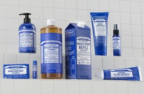 ドクターブロナーのアイテムは世界40か国以上で親しまれ、主力商品のマジックソープは、26年連続全米売上No.1*のナチュラルソープに選ばれています。 |
