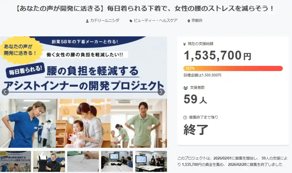 本プロジェクトは、モニター様からのお声を裏付ける効果計測を実施するためのご支援をいただくためクラウドファンディングサイト CAMPFIRE にて実施し、 |