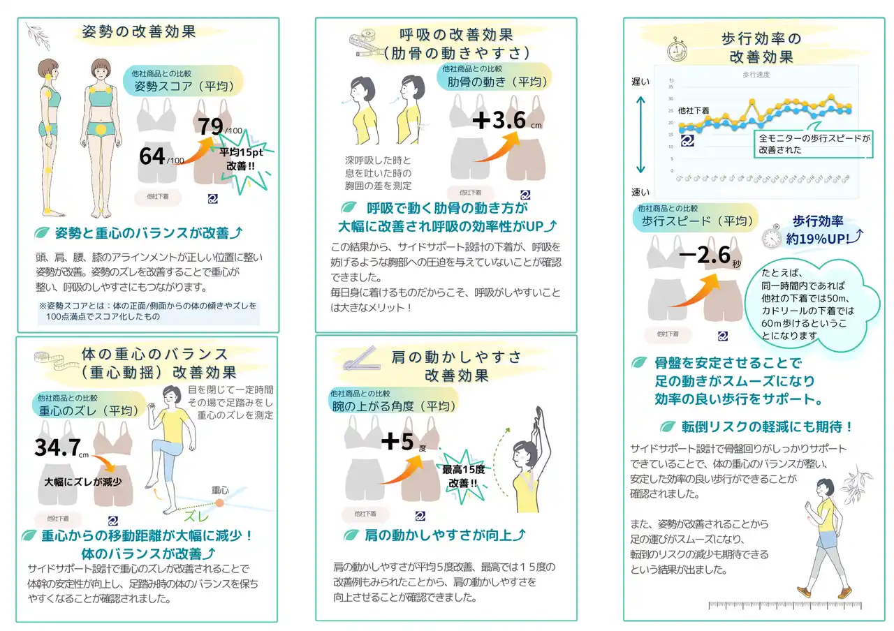 これらの結果は、当社のサイドサポート設計の下着の身体への有用性を示すものです。 |