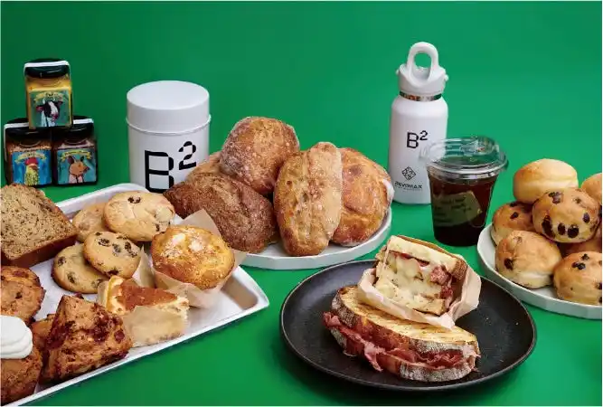 「B²」はベーカリー工場とコーヒー焙煎工場が一体となった日本初の「インダストリアルカフェ」として、一号店をカフェの激戦地、清澄白河に 2020 年の 3 月よりオープンしました。以来、焼き立ての美味しいパンと、その場で焙煎した香り高いコーヒーとのマリアージュをお楽しみ頂くお客さまが数多くご来店くださり、行列の絶えない店となりました。 |