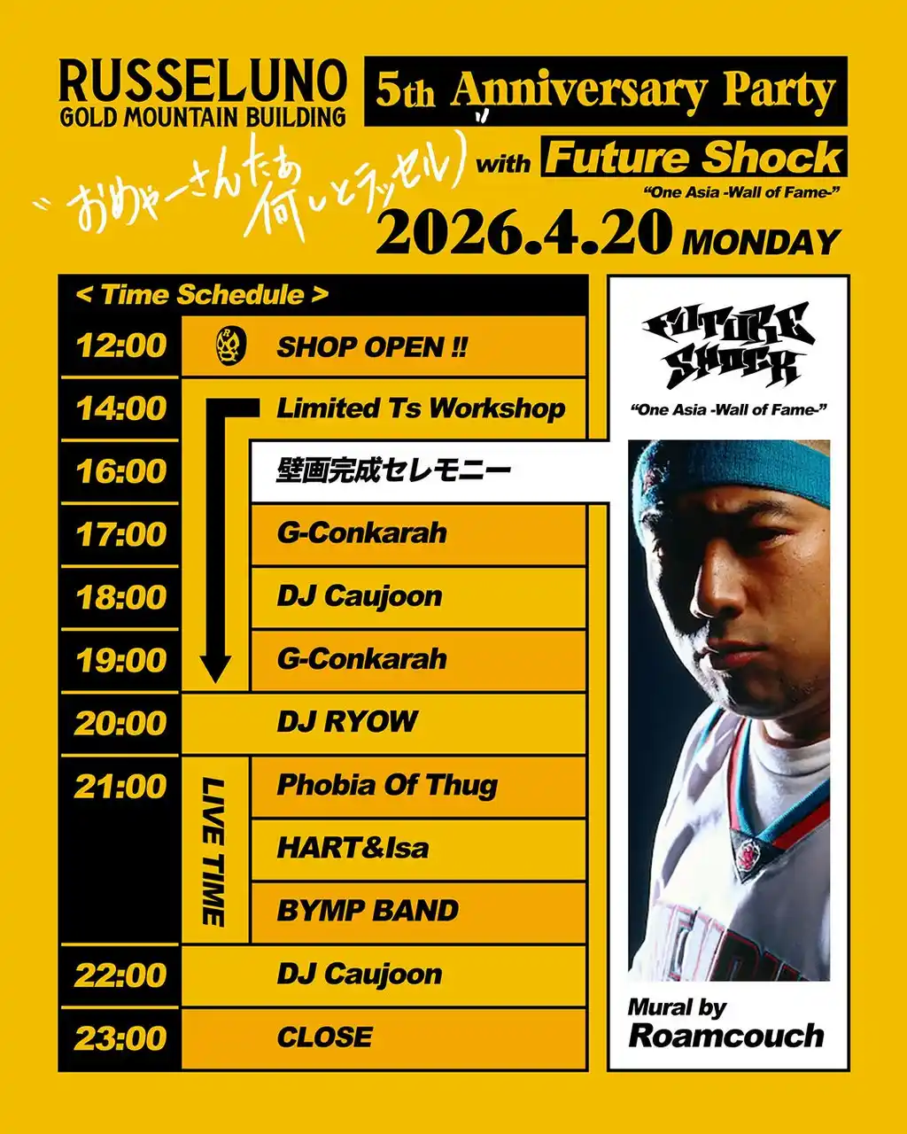 | FUTURE SHOCKが企画運営する【One Asia - Wall of Fame-】第一弾として、2026年4月20日にローンチイベントを名古屋にてRusselunoと共同開催。 |