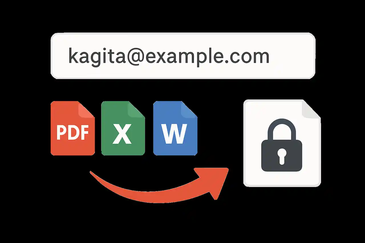 施錠時にメールの宛先を自動取得するため、「暗号化の受取人」と「メールの送信先」が一致します。万が一メールを誤送信しても、指定した受取人以外はファイルを開くことができません。パスワード付きZIPでは実現できなかった、送信経路とは独立したアクセス制御を提供します。 |