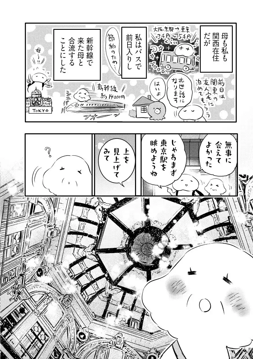 年間で複数回、国内外を旅する漫画家の”私”は 念願叶って、旅に不慣れな母を連れて関東旅行に行くことに。 親子水入らずの二人旅、かと思いきや 東京駅に現れた母は、まさかの壊れたサンダル姿で…!? 開始早々、靴探しに奔走するなど、前途多難なドタバタ珍道中に。