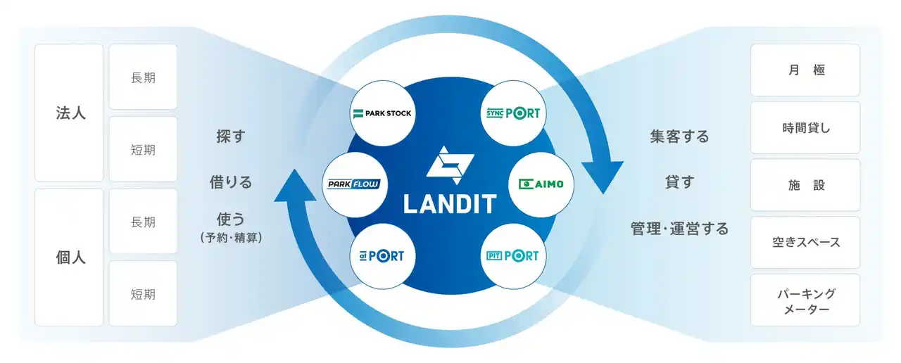 ランディット株式会社は、「世の中に最適と豊かさを提供し、人々の営みに欠かせない存在に」をミッションに、衛星×IoT×AI×データにより、幅広いソリューションを提供するスタートアップ企業です。「at PORT」をはじめ、定期駐車場管理サービス「SYNC PORT(シンクポート)」、予約式駐車場サービス「PIT PORT(ピットポート)」、AIカメラによる運営システム「AIMO Parking(アイモパーキング)」、月極駐車場のオンラインマーケット「PARK STOCK(パークストック)」、コインパーキング、商業施設駐車場などの検索・精算アプリ「PARK FLOW(パークフロー)」、リアルタイム遠隔臨場「LiveBiz(ライブビズ)」等のサービスを展開しています。 |