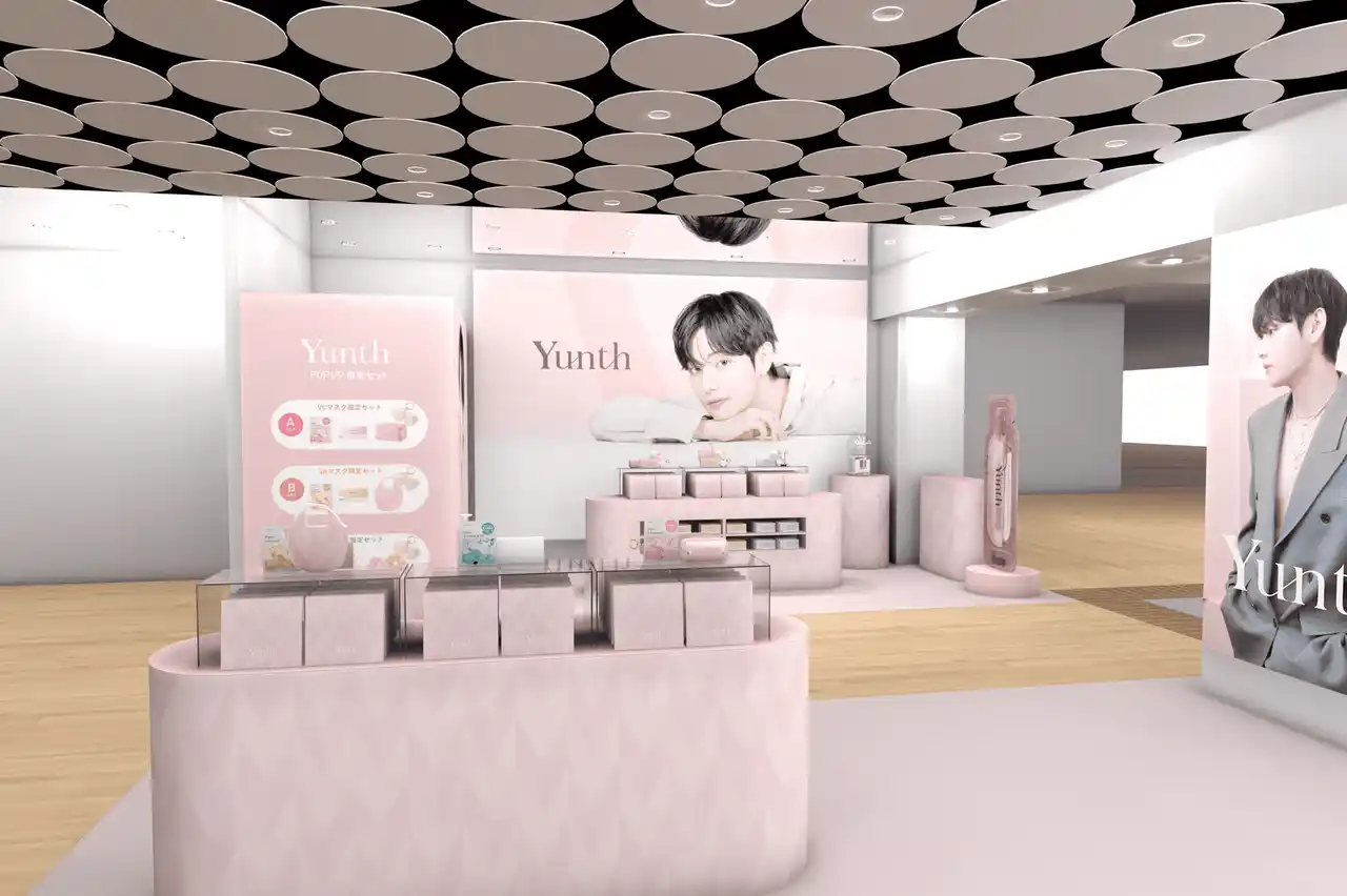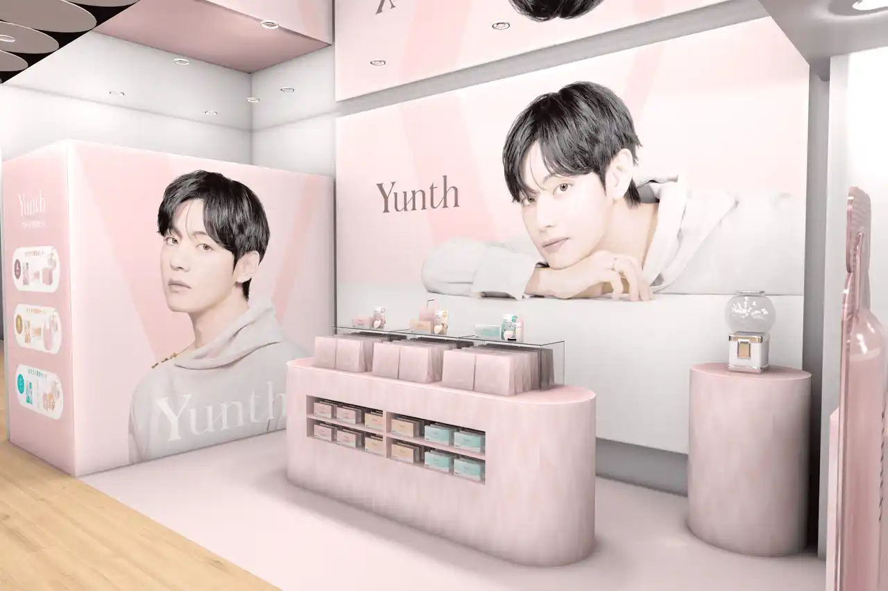 Yunthのテーマカラーであるピンクを基調とした特別な空間に、ブランドアンバサダーであるBTS・Vさんのビジュアルを掲出。ブランドの世界観を体感いただけます。 会場では、Yunthの人気商品と新商品、さらにオリジナルノベルティを組み合わせたポップアップ限定セットの販売や、予約来場者限定の特典など、この期間だけの特別なコンテンツをご用意。 |