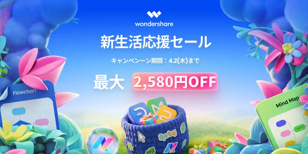 株式会社ワンダーシェアーソフトウェア(東京都港区、代表:呉太兵)は、作図ソフト『EdrawMax(エドラマックス)』、およびマインドマップソフト『EdrawMind(エドラマインド)』を特別価格で提供する「新生活応援セール」を開始いたしました。
