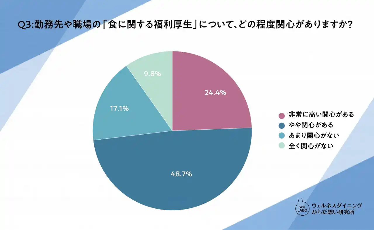 | Q3:勤務先や職場の「食に関する福利厚生」について、どの程度関心がありますか? | |||||||||