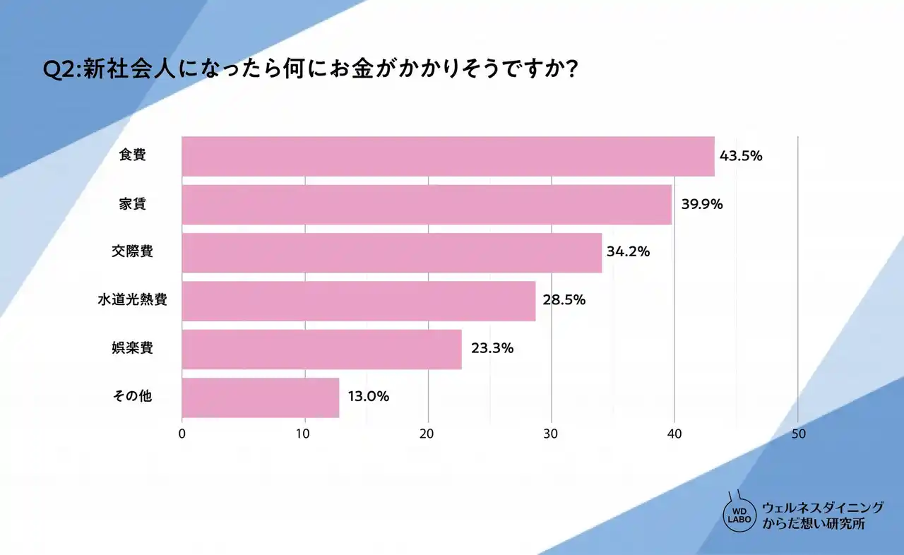 | ウェルネスダイニング株式会社(本社:東京都墨田区、代表取締役:中本哲宏)は、4月から社会人になる男女を対象に「食生活と福利厚生に関する意識調査」を実施いたしました。本調査により、新社会人が抱える食生活への不安や、企業に求める福利厚生の具体的なニーズが明らかになりました。 | |||||||||