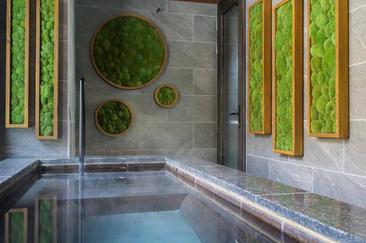 | 特徴1 壁一面の苔に囲まれたユニークな入浴体験【Power Up】 | ||||||||