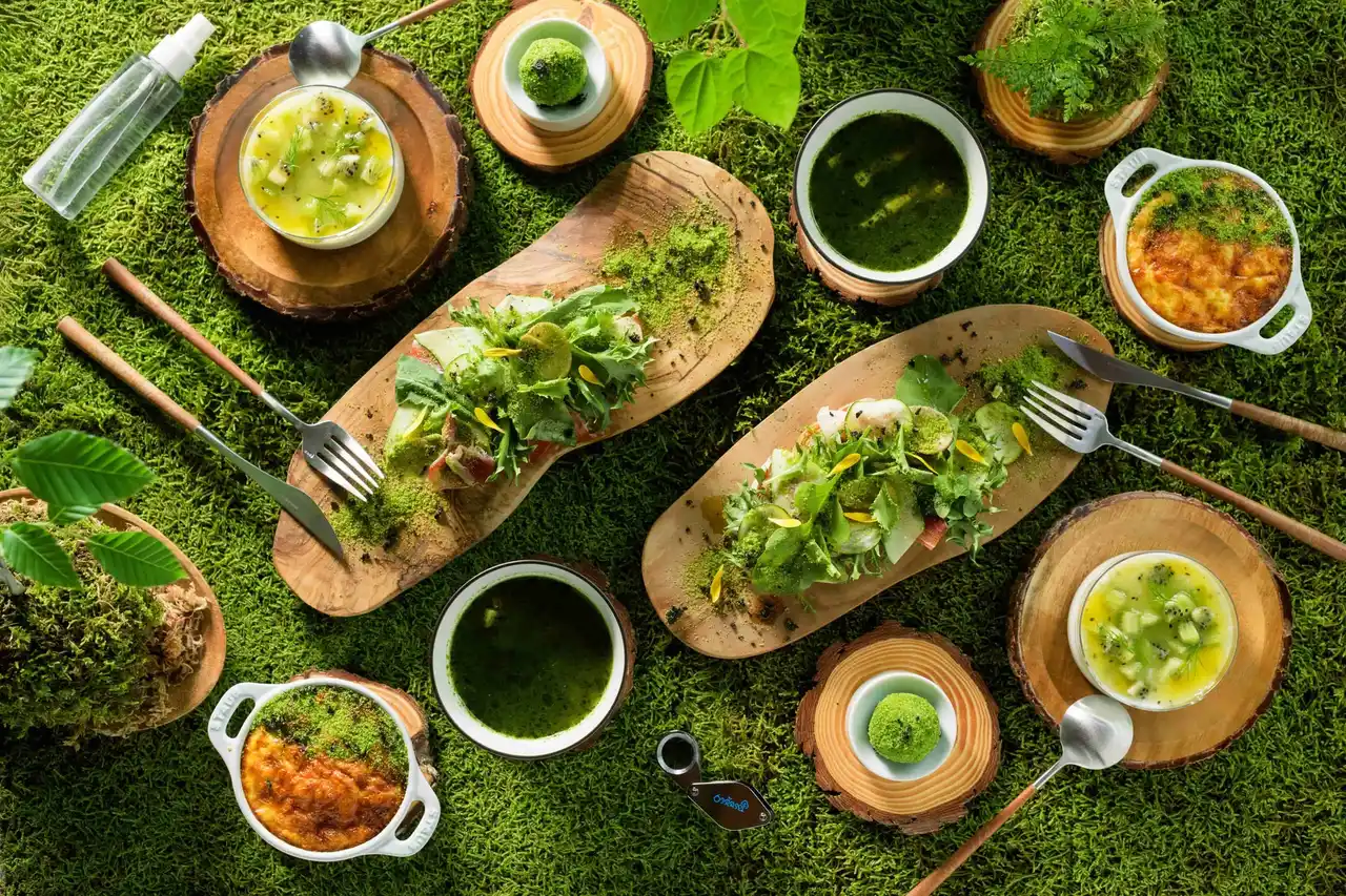 | ちを表すコンディメントとともに提供します。見た目はもちろん、自然の歴史も味わいながら、苔の魅 | ||||||||