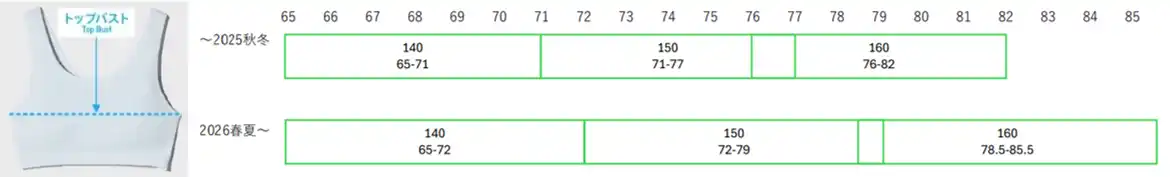 成長に合わせたやわらかなカップは、サイズごとに形状を調整し、成長が早まっている現代の女の子に向けて、各サイズで対応できる大きさの幅を広げました。見た目も下着に見えづらいハーフトップデザインにすることで、学校生活や習い事でも、安心して着用いただけます。 |