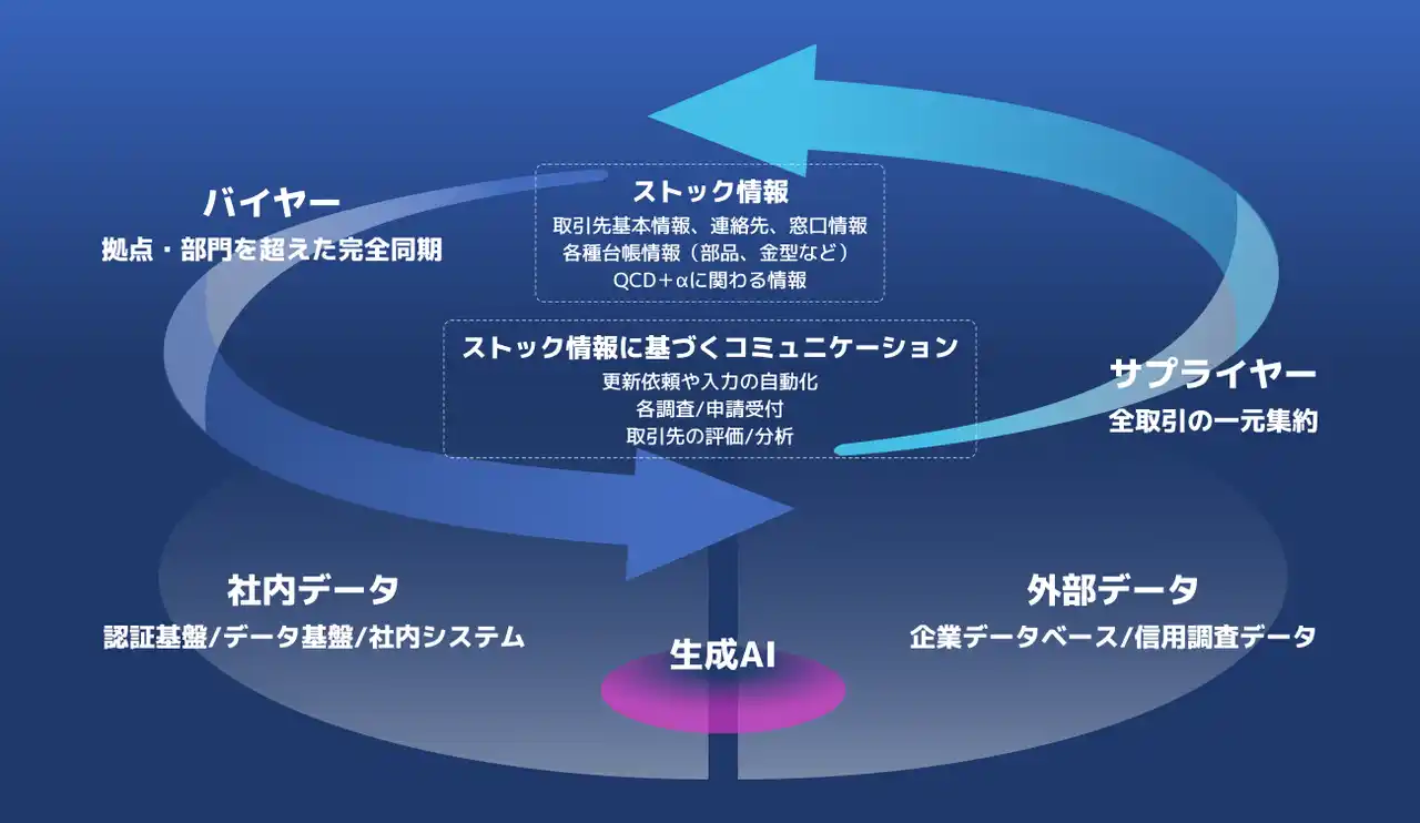本サービスは、製造業の現場でブラックボックス化しているサプライヤーとのやり取りをデジタル化し、データ収集・管理・分析を自動化します。これにより、2026年1月施行の取引適正化法への対応やカーボンニュートラル、BCP対策など、爆発的に増加する調達部門の業務負荷を削減し、製造業の利益率向上と「戦略的調達」へのシフトを支援します。本プロジェクトは、株式会社SUBARUをはじめとするパートナー企業各社と共に、調達業務における「協調領域」の最適化を推進しています。