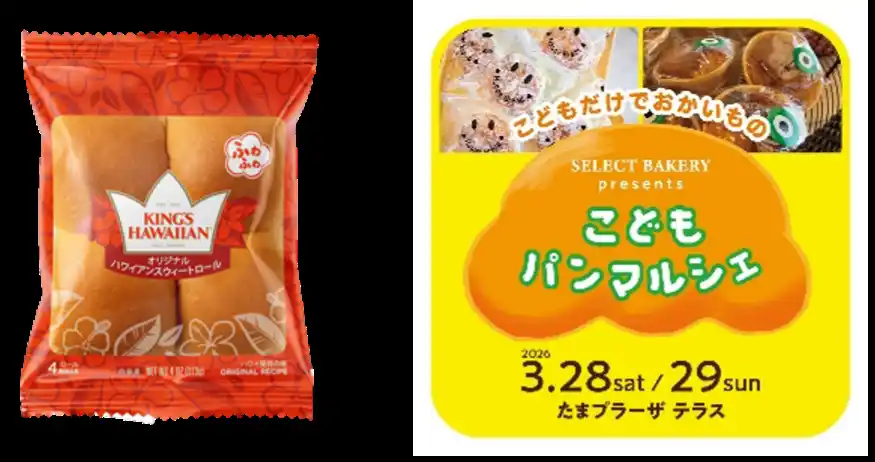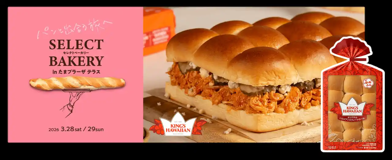 日本へ本格上陸したアメリカNo.1*人気スウィートロール「KING’S HAWAIIAN(キングスハワイアン)」(以下「KING’S HAWAIIAN」)は、2026年3月28日(土)から2日間にわたり開催される全国の人気ベーカリーやパンのお供約20店舗が集結するイベント「セレクトベーカリー in たまプラーザ テラス」に出店いたします。 |