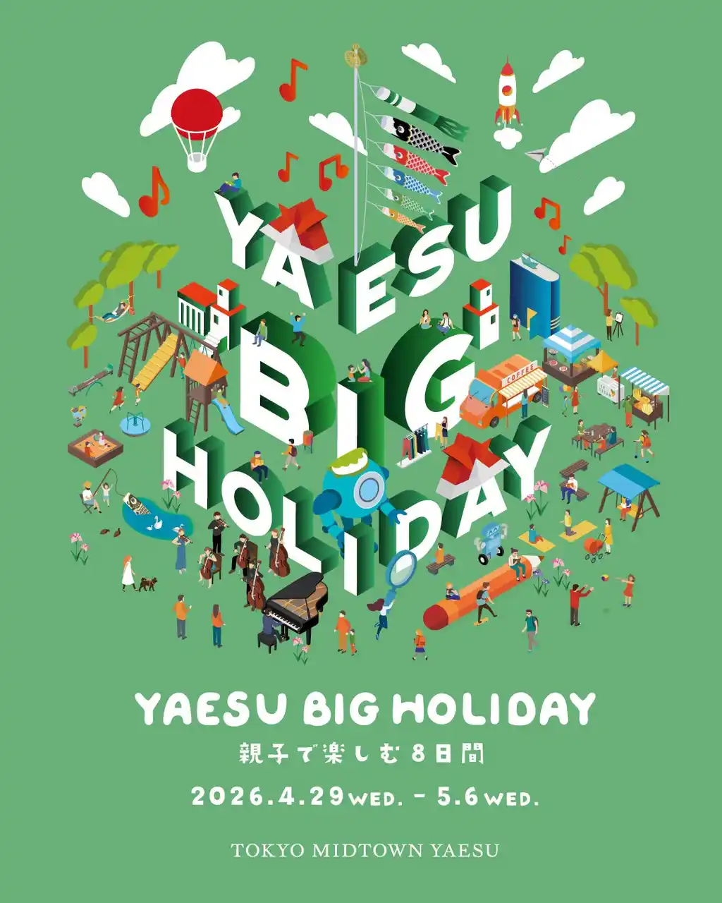 東京ミッドタウン八重洲(所在地:東京都中央区)は、2026年4月29日(水・祝)~5月6日(水・振休)の大型連休にあわせ「YAESU BIG HOLIDAY 2026」を開催いたします。本イベントは、ゴールデンウィークの大型連休と“端午の節句”の「健やかな成長を願う」という想いを掛け合わせ、“大きくなろう”をテーマに実施。東京駅八重洲口直結という利便性を活かし、お出かけの合間にも立ち寄りやすい立地で、親子で楽しめる体験型コンテンツを多数展開します。 |