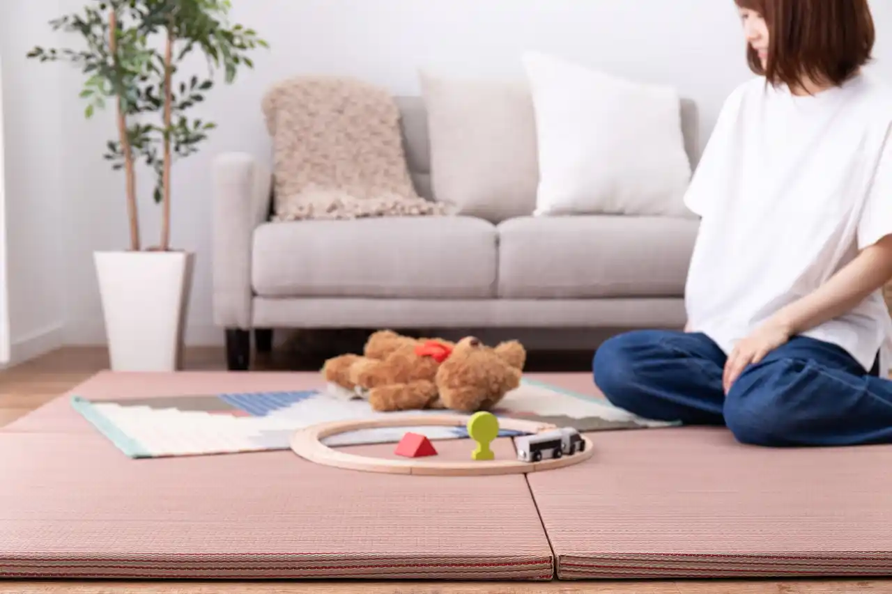 適度な弾力があり、床に直接座っても疲れにくいのが魅力。 小さなお子さまの遊び場や、ごろ寝スペースとしても最適です。 |