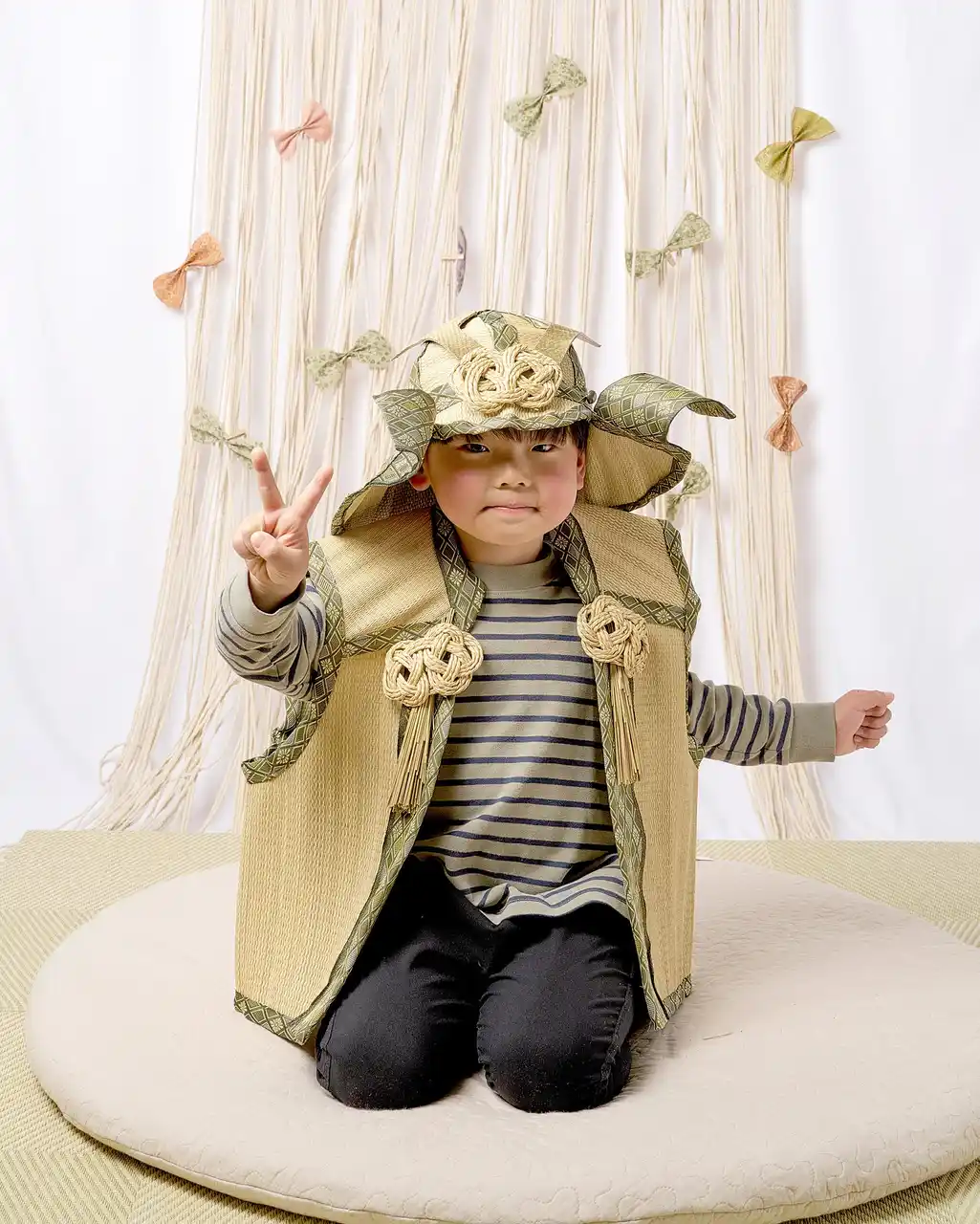 置き畳とイブルマットを組み合わせて、優しく温かみのある空間を作り、弊社のカメラマンによる無料撮影を実施いたします。い草の兜やチョッキはレンタル可能で、イベントの来場記念撮影、子どもの日シーズンの記念撮影としてもおすすめです。月齢フォトに最適な自社の人気商品イブルマットでの撮影もお勧めです。 |