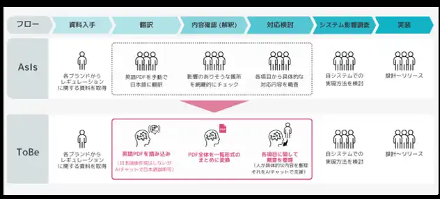 国際ブランドが発行するブランドエンハンス関連資料の翻訳からチェックリストの作成までの工数を、手作業で実施した場合と比較して約3割削減 |