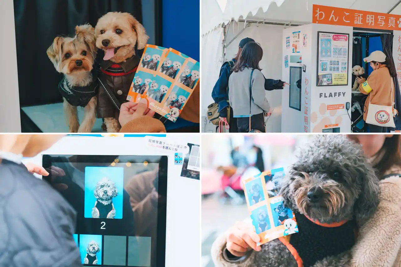 大好評の「わんこ証明写真」ブースでは、株式会社エポスカードとのコラボ企画が連日人気を集め、整理券を求めて多くの来場者が訪れました。イベント限定のオリジナルフレームも用意され、愛犬との撮影がより特別な一枚として喜ばれていました。 また、わんちゃんのキュートな表情を収めた証明写真をそのままエポスペットカードに使用できる点も魅力となり、飼い主の皆さまから大変ご好評をいただきました。 |