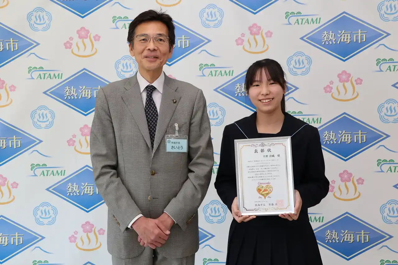 パッケージデザインに採用された平野詩織さんは、絵を描くことが好きで、今回のデザインでは、だいだいの花や果汁、チーズケーキの材料などを調べ、それらをモチーフとして表現しました。商品の特徴を的確に表現しながら、温かみのあるデザインは、災害時においても人の心を和らげ、安心感を与えるとして高く評価されました。市役所と観光局は、今後3年間で約9,000缶の製造を予定しています。 |