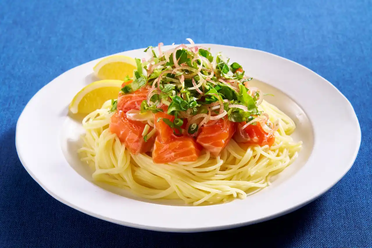 「薬味たっぷりサーモンの塩こうじパスタ」 |