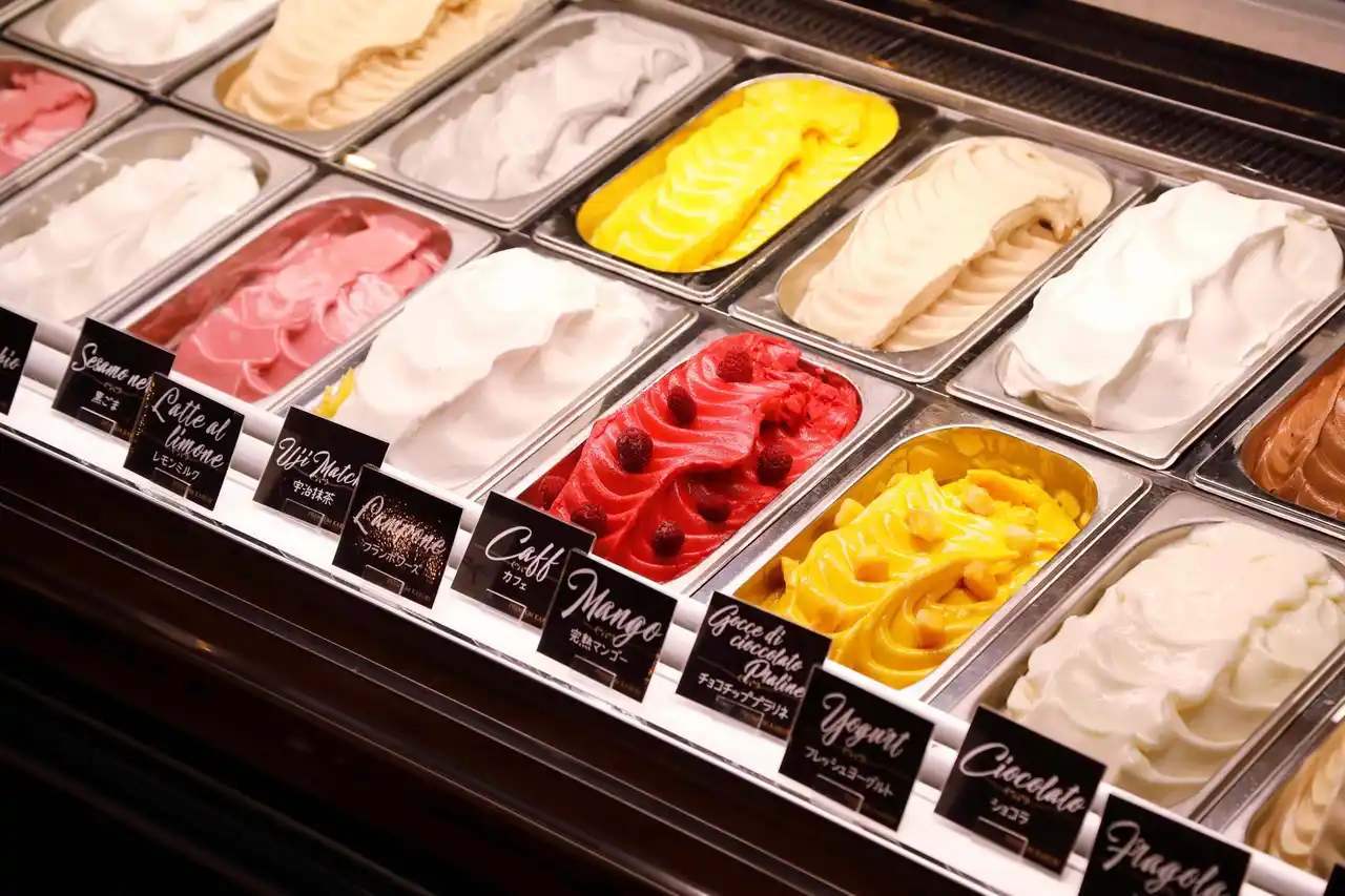 店内出来立てのジェラートは滑らかな舌触りが特徴で、毎月3種類の新しいフレーバーをご提供しております。 |