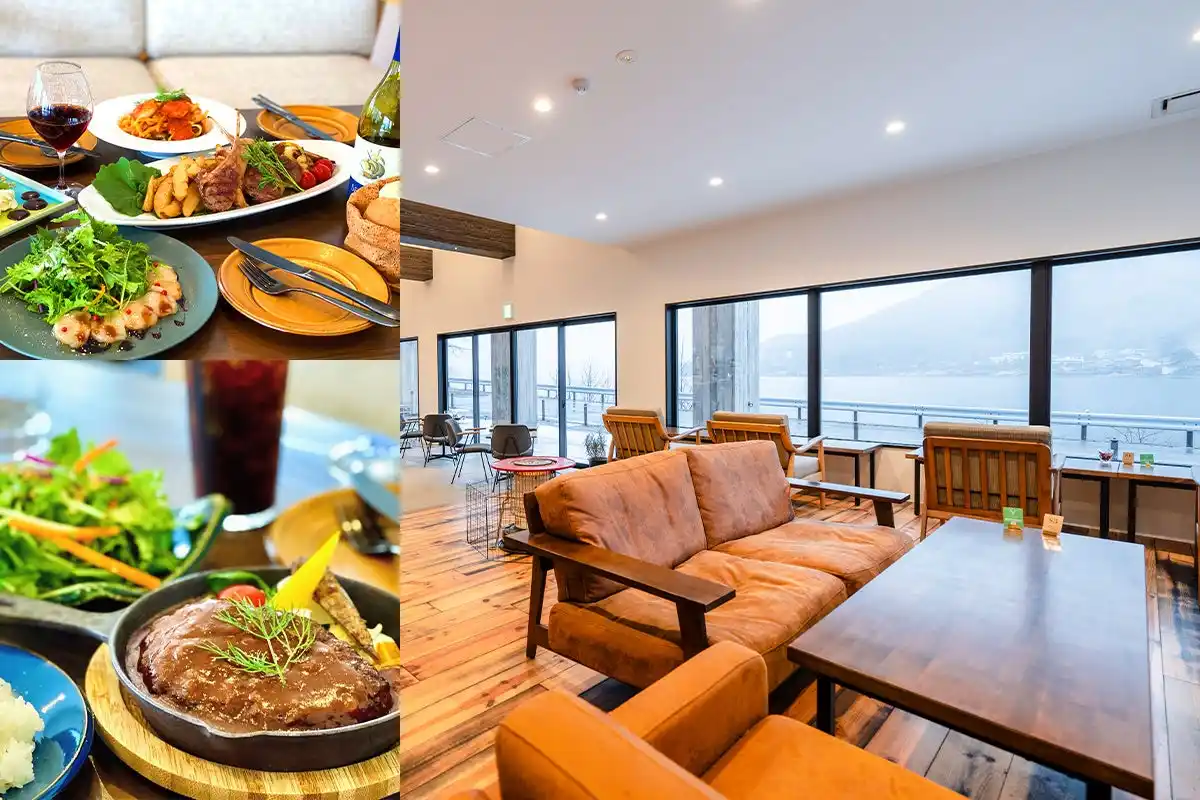 男体山と中禅寺湖が一望できる奥日光のレストランで、霧降高原牛や頂鱒(いただきます)など、日光が誇る数多くのブランド食材を使った料理を愛犬と一緒に店内でお食事できます。 |