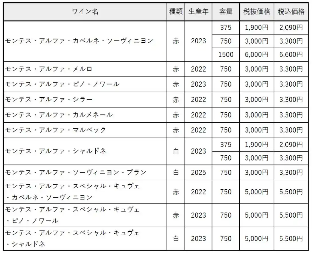 エノテカ株式会社(本社:東京都港区、代表取締役社長:堀 慎二)は、プレミアム・チリワインの造り手として知られる「モンテス」の『モンテス・アルファ』シリーズ合計11種類のラベルデザインをリニューアルし、4月から順次切り替えます。加えて、同シリーズの主力商品である『モンテス・アルファ・カベルネ・ソーヴィニヨン』のブレンドを刷新し、世界に先駆けて4月から発売します。 |