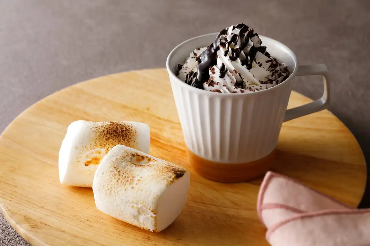 | デザートには、屋外レジャー気分をさらに盛り上げる「ホットチョコレート&焼きマシュマロ」をご用意しました。お子さまにも大人気のマシュマロは、ご自身のお好みの焼き加減でお召し上がりいただけます。 | |||||||||