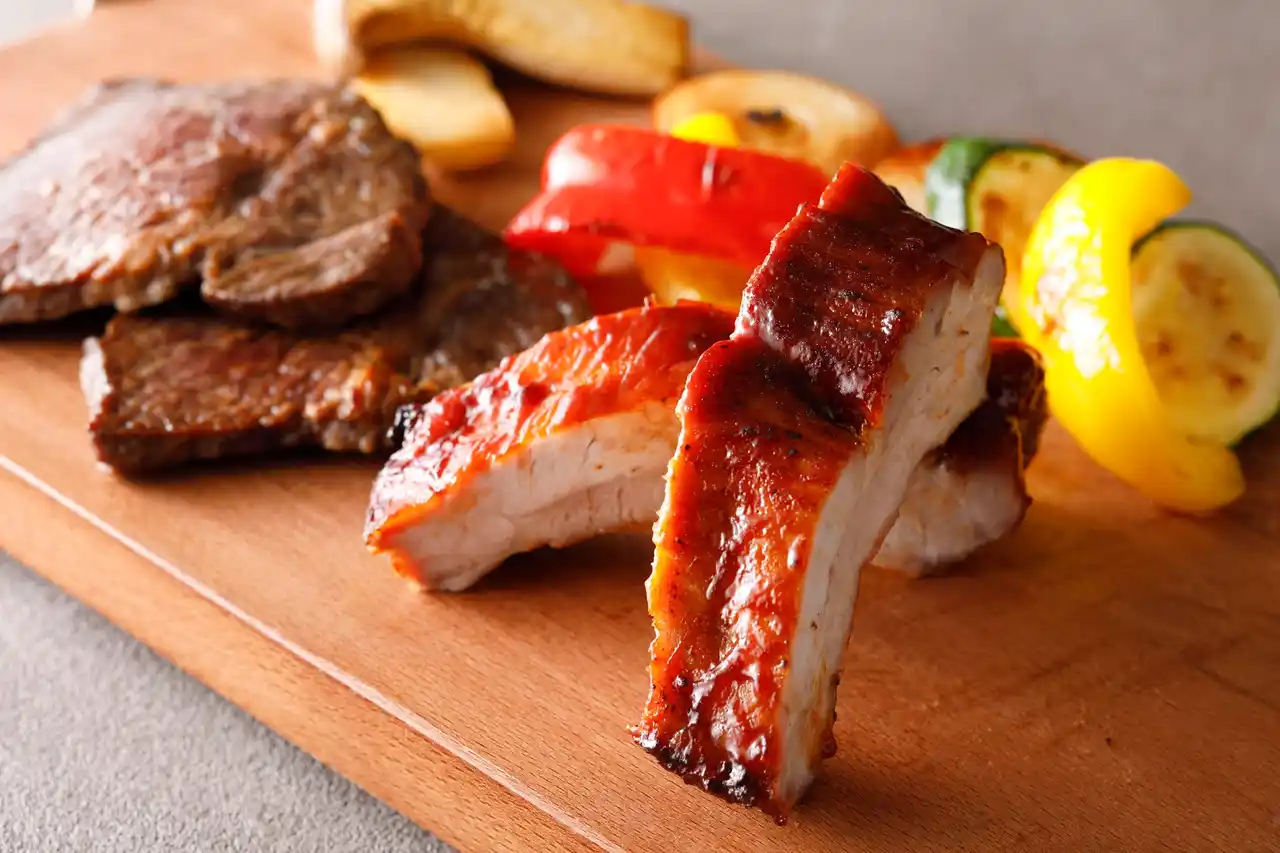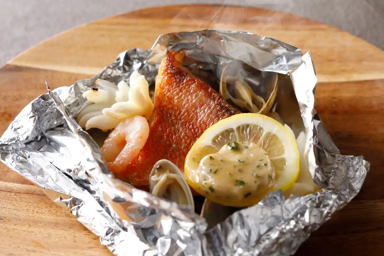 | 今回の主役は、じっくりと焼き上げた肉厚ジューシーな「ポークスペアリブ」。アウトドアならではの開放感に身を任せ、豪快にかぶりついていただきたい逸品です。さらに、旬の赤穂鯛や海老、あさりなど、魚介の旨みをぎゅっととじ込めた「シーフードホイル焼き」もラインアップ。 | |||||||||