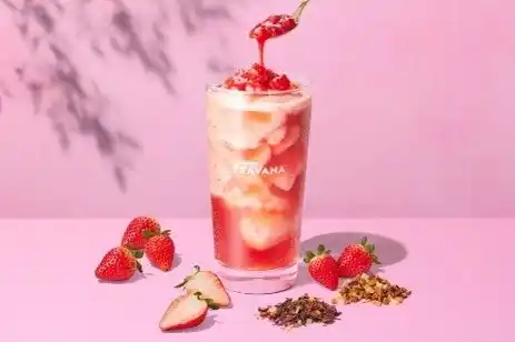 春の風物詩であるさくらアリュールティーとピーチトランクイリティーにストロベリー果肉を合わせたTea&Cafe限定のフローズンビバレッジです。 |