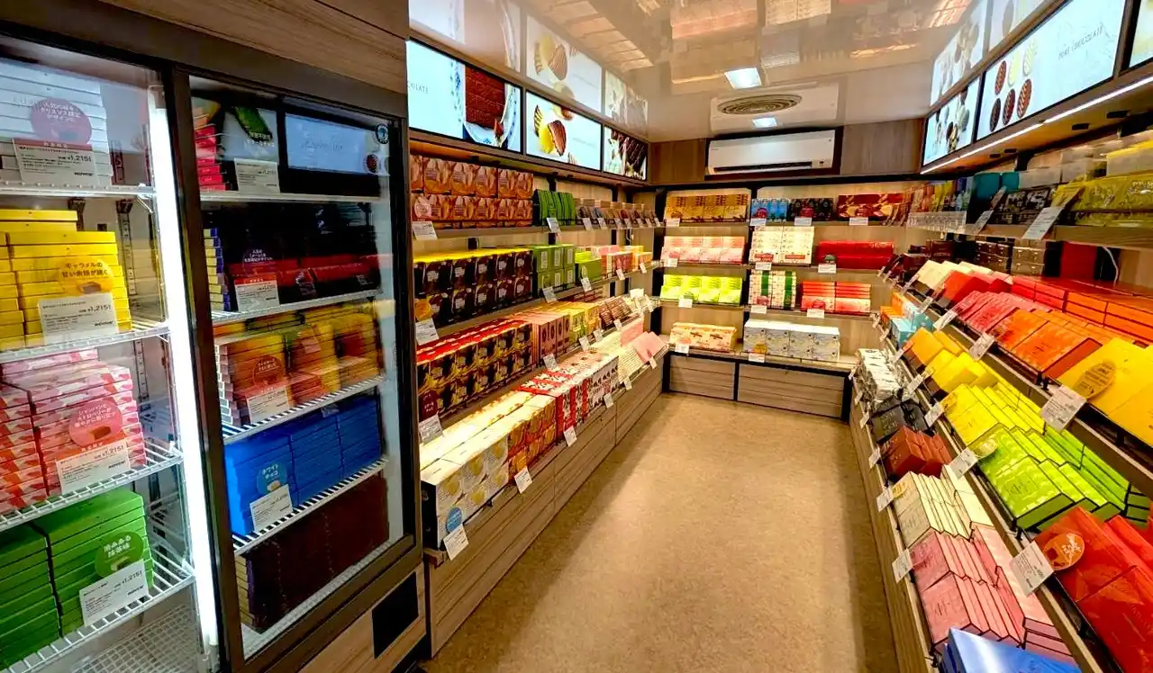 車内では、生チョコレートやポテトチップチョコレートといった人気商品や限定商品など最大約90種類(※)を販売しています。限られたスペースながらも北海道物産展を超える豊富な品揃えの中から商品をお選びいただけます。お近くにお越しの際には、ぜひお立ち寄りください 。 |