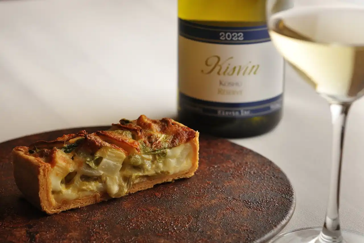 メインダイニング「OTTO SETTE」では、この日のためにKisvin Wineryのワインをより深く味わうために考案された、こだわりの料理を提供しました。例えば、しっかりとした骨格と苦みが特徴の「Kisvin Koshu Reserve 2022」には、山菜の苦味とチーズやクリームをふんだんに使用した「山菜のトルタ」を合わせました。ワインの樽香とトルタの生地の香ばしさが重なり、ワインと料理の両方の風味を引き立てました。参加者は、斎藤まゆ氏とリゾナーレ八ヶ岳のソムリエ 加茂文彦の解説とともに、ワインを軸に構成された全8皿の料理とのマリアージュを堪能しました。 |