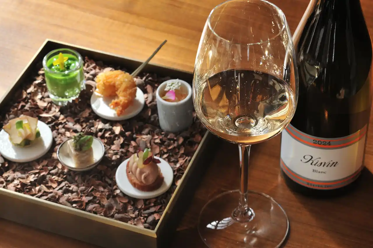 自然豊かな八ヶ岳エリアのリゾートホテル「リゾナーレ八ヶ岳」では、2026年3月8日から2日間にかけて、ワインリゾートで味わう、新進気鋭のワイナリー「Kisvin Winery(キスヴィン・ワイナリー)」の希少なワインと「OTTO SETTE」の特別コース。一夜限りのメーカーズディナーを開催しました。当日はワインや食の愛好家をはじめとする18名が参加。Kisvin Winery(山梨県甲州市)の醸造責任者 斎藤まゆ氏と醸造家 川上黎氏を迎え、同ワイナリーのワインに合わせて創り上げた当ホテルのメインダイニング「OTTO SETTE」で特別なコースを提供しました。イベントでは、同ワイナリーの葡萄畑やワイナリーの見学、レストランバスでのアペリティーヴォ(*1)も行い、造り手の想いに触れる贅沢なひとときとなりました。 |