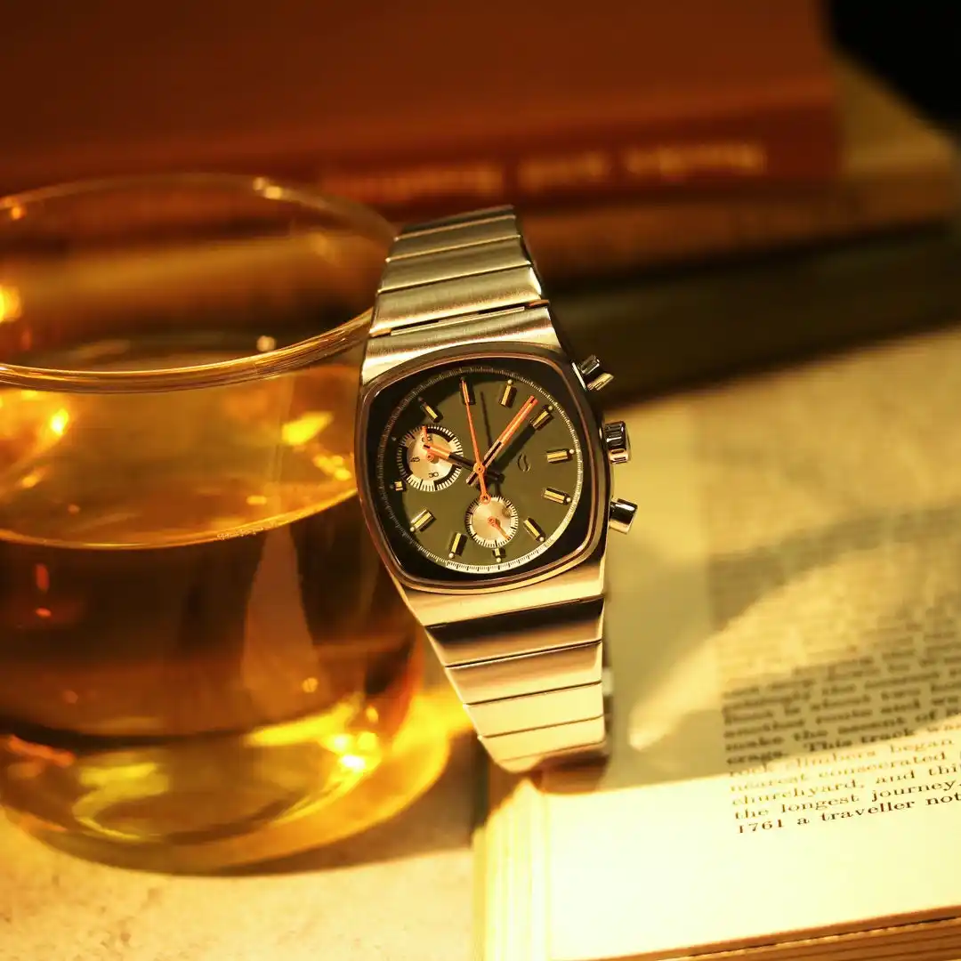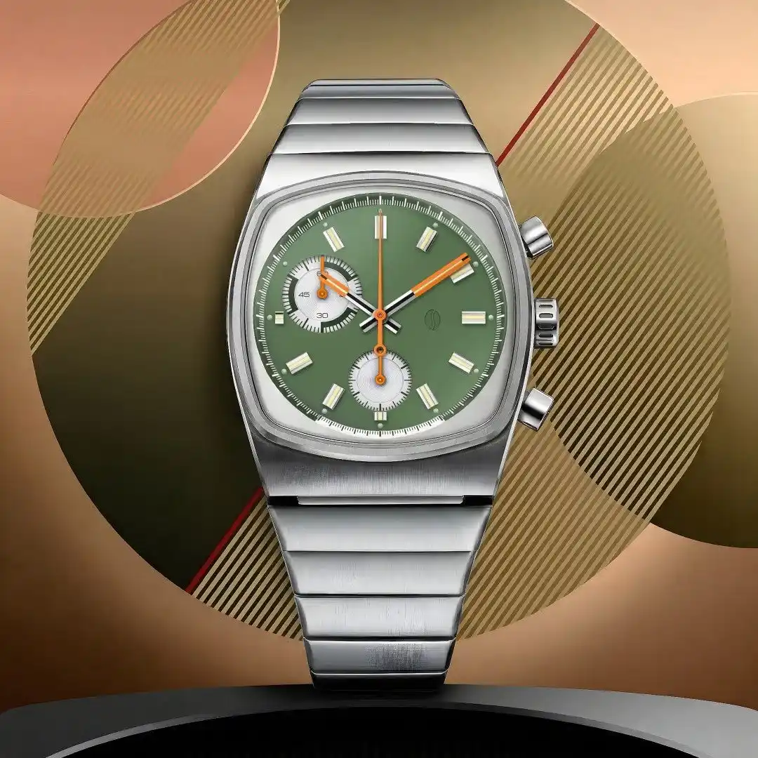 ケースサイズは36mm。小ぶりなクォーツクロノグラフのレトロ感を残しつつ、日本限定感のあるカラーリングでまとまった一本。普通過ぎるデザインに飽き飽きした方のセカンドウォッチとしてもオススメです。 |