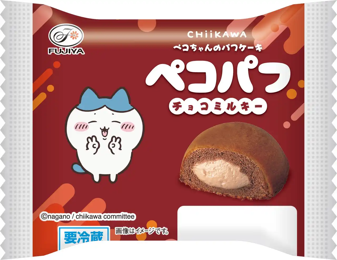 ふわふわの生地に、ミルキー風味のクリームを詰めた不二家の人気商品「ペコパフ」が「ちいかわ」とコラボ。フレーバーは全3種です。 |