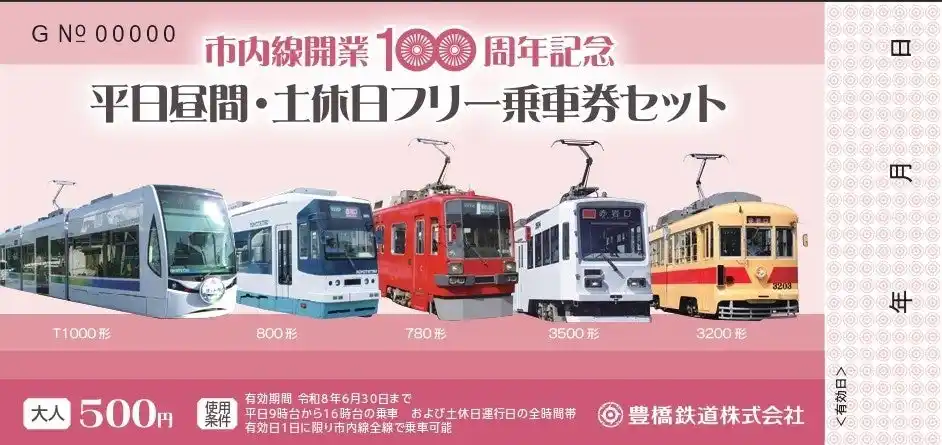 | 発売箇所:市内線営業所、渥美線有人駅(新豊橋、南栄、高師、大清水、三河田原)、豊橋鉄道ホームページ | ||||||||||||||