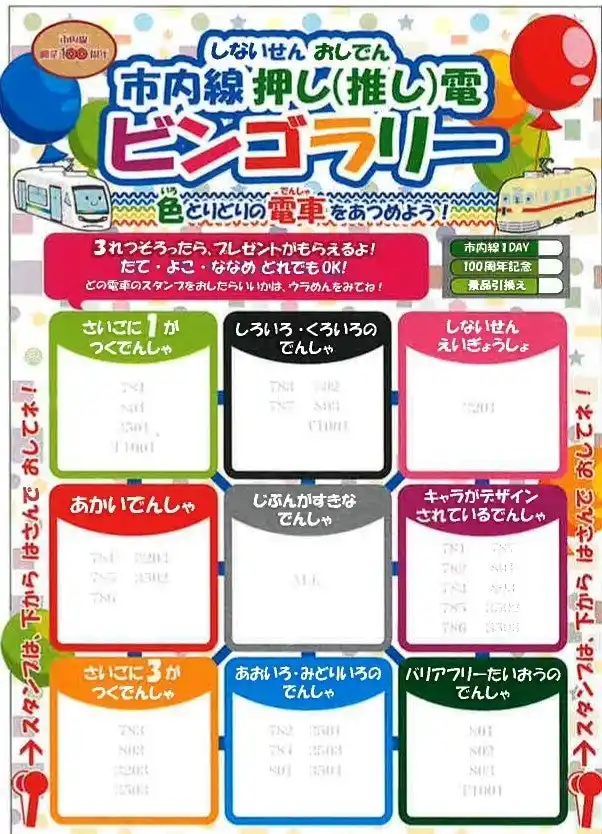 | 色とりどりの車両を集めよう!市内線押し(推し)電ビンゴラリーを開催! |