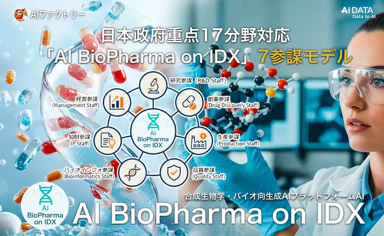【AIデータ株式会社】 日本政府重点17分野対応、「AI BioPharma on IDX」"AI 7参謀モデル”新搭載! バイオ・創薬産業に特化した戦略AIが始動 ~ 日本を「研究が強い国」から「バイオ産業で勝つ国」へ ~