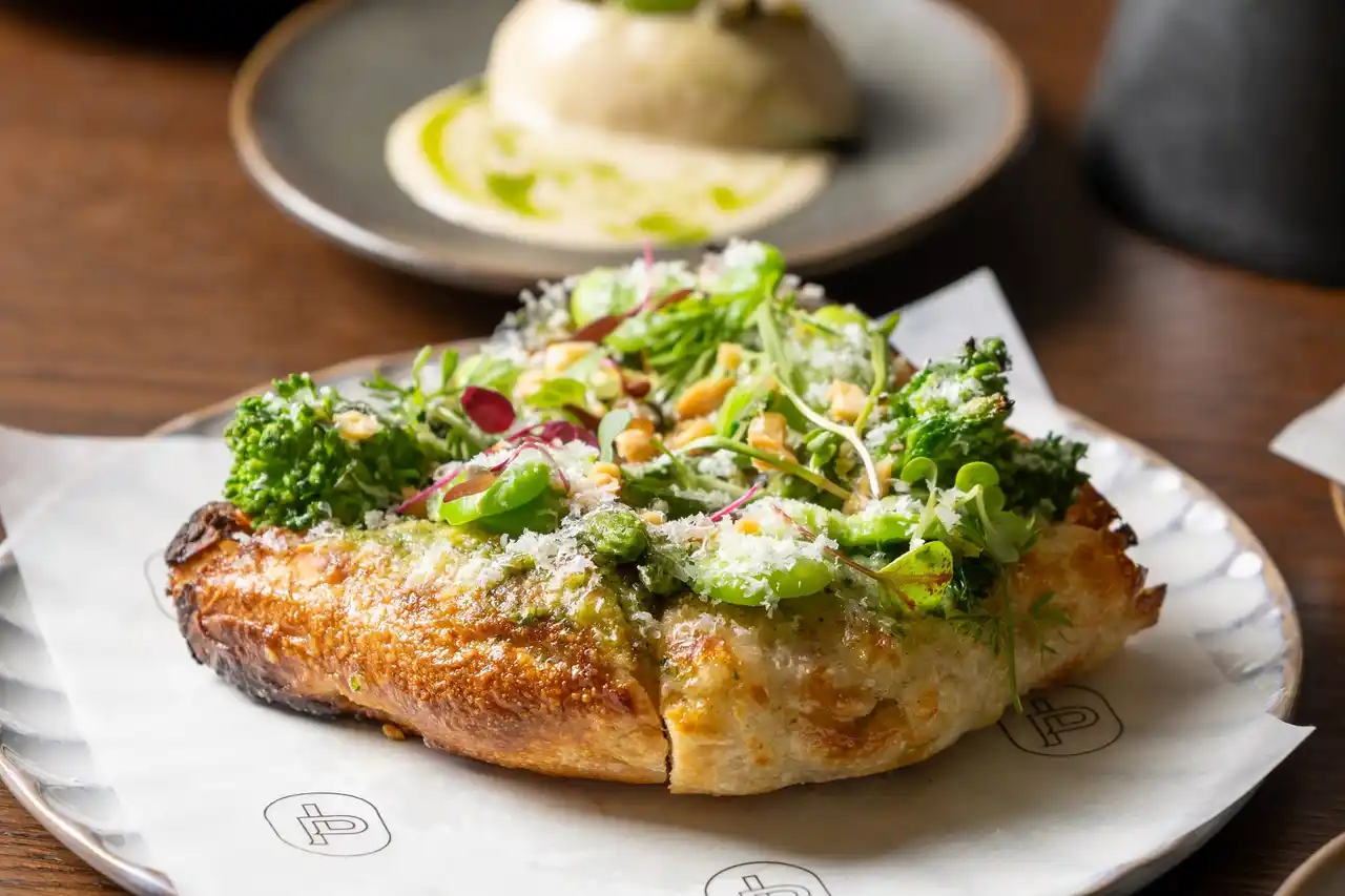 ・春野菜のピッツェッタ ペスト・ジェノヴェーゼ ヤングペコリーノ 松の実 レモン |