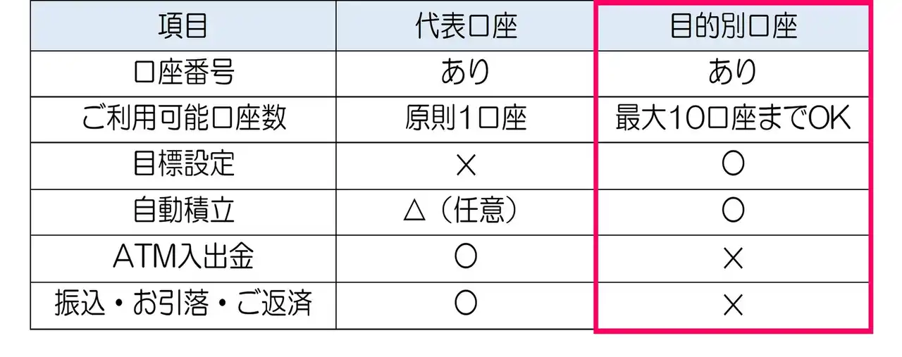 | 3.代表口座と目的別口座の違い | |||