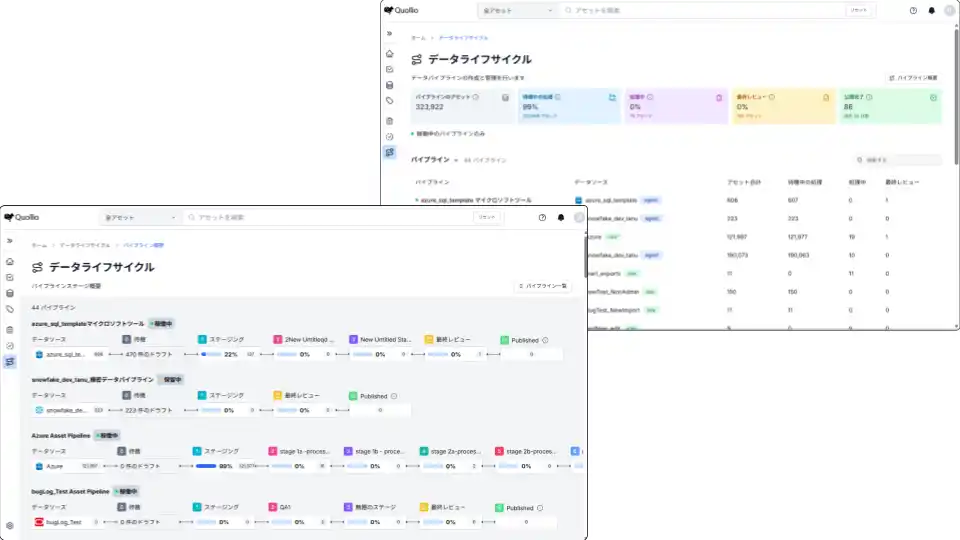 本機能は、主製品であるQDICの機能拡張オプションであり、データ資産の取り込みからメタデータの編集・レビュー・最終公開に至るまでのすべてのプロセスを追跡・統制する、ステージベースのパイプライン機能を提供します。