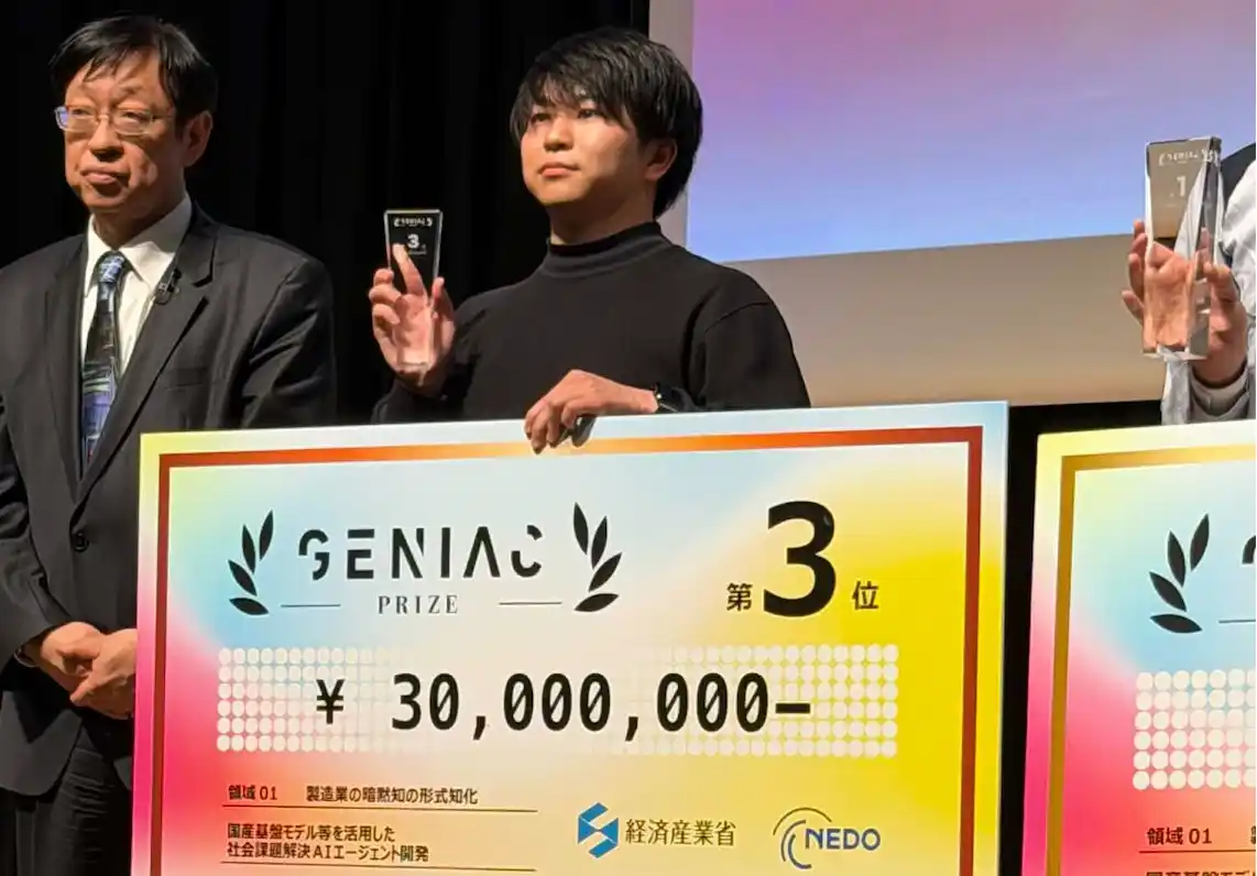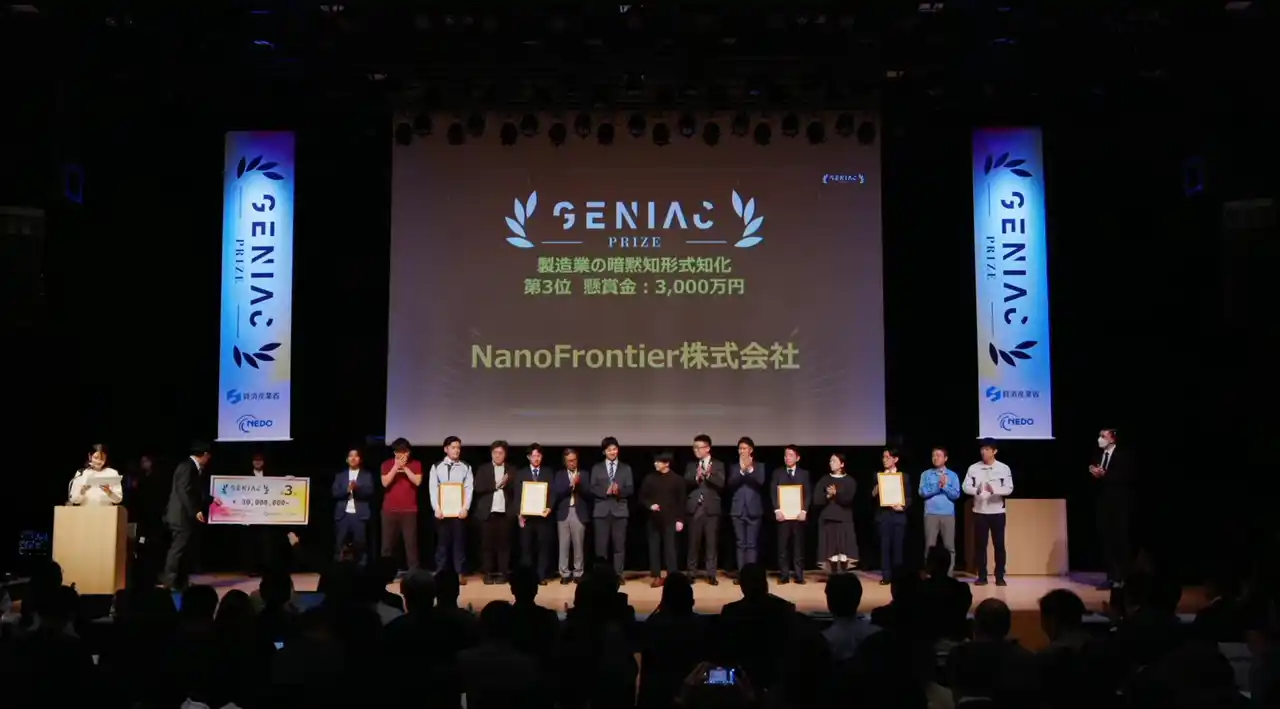NanoFrontier株式会社(本社:宮城県仙台市、代表取締役:井上 誠也、以下「NanoFrontier」)は、2026年3月24日に開催されたNEDO懸賞金活用型プログラム「GENIAC-PRIZE」最終審査・表彰式において、領域01「国産基盤モデル等を活用した社会課題解決AIエージェント開発」テーマI「製造業の暗黙知の形式知化」にて第3位(懸賞金3,000万円)・地域賞(懸賞金250万円)を受賞しました。 |