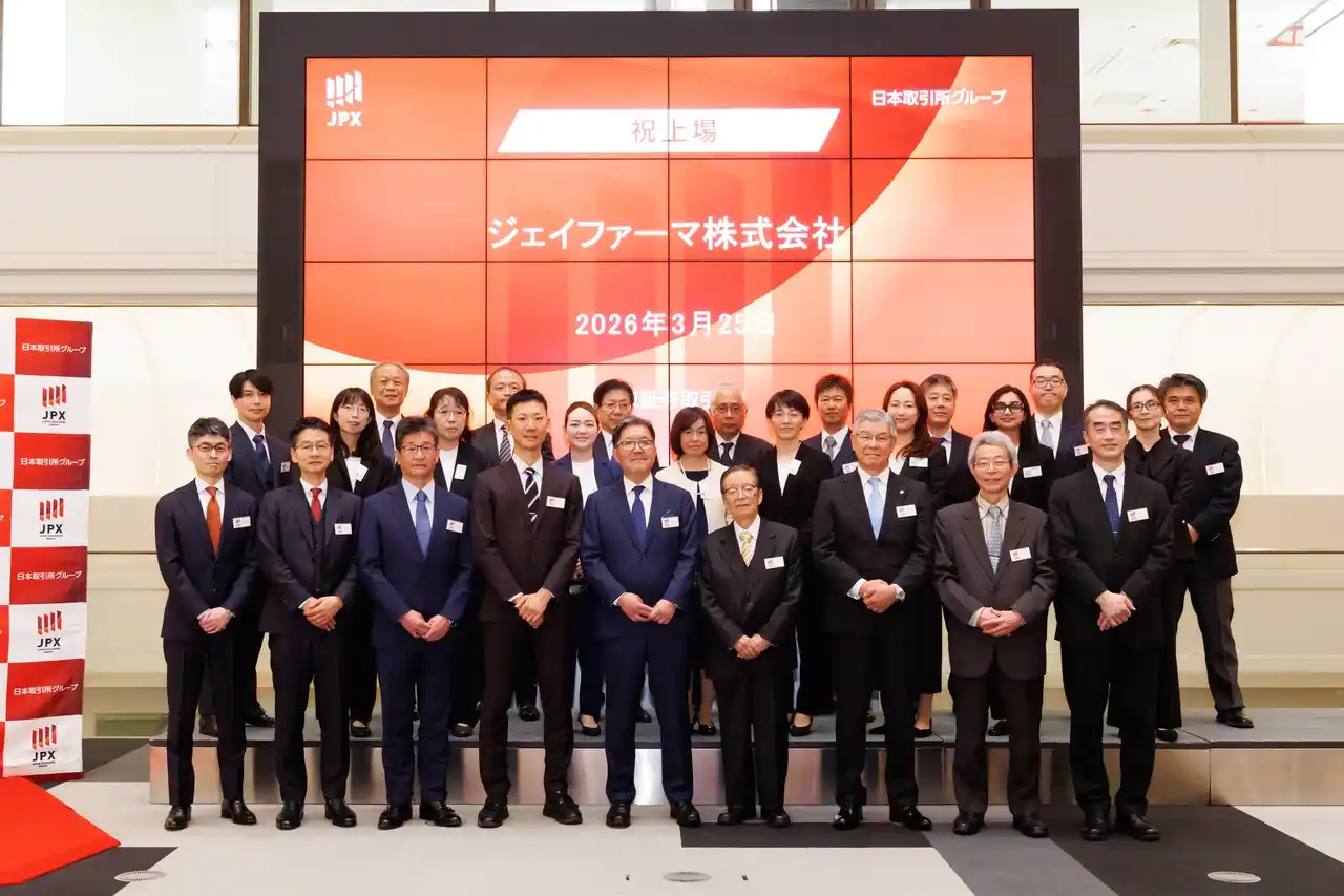 | ジェイファーマ株式会社(本社:東京都港区、代表取締役社長:吉武益広、コード番号:520A)は、2026年3月25日に東京証券取引所グロース市場へ新規上場いたしました。 | |||