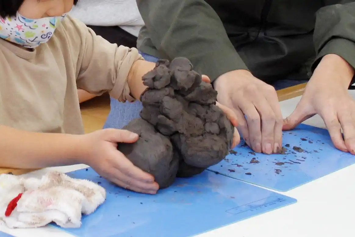 手指から足先までたくさん動かして土のねんどと仲良くなろう!小さなやきものも作ります。 ※作品は後日、窯で焼いてお渡しします。 |