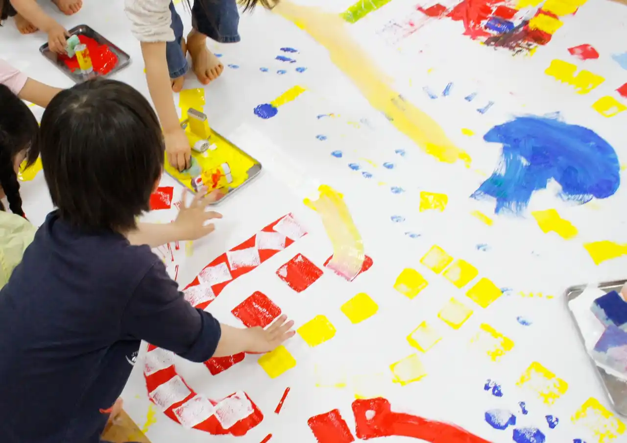 赤、青、黄、白、4色の絵の具からいろいろな色づくりに挑戦します。※一部親子で参加する場面があります。 |