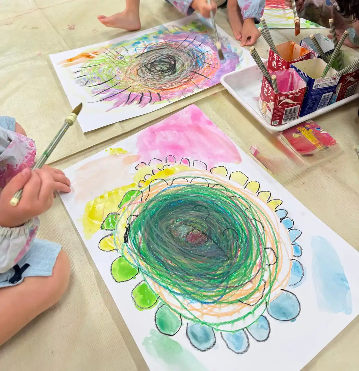 幼いころからいろいろな素材に触れて自分を表現することは、正解のない問いにも自分なりの答えを出す力となり、人によってちがう表現と出会うことは「自分もいいし、あの子もいいね」と認め合えるしなやかな心を育みます。 子どもにとって、素材で遊ぶ活動も描きつくる活動も、まずはゆったりとした時間の中で自分と向き合い、「こんなことをしてみたい」という気持ちに出会うことが大切です。はじめての挑戦も安心してできるよう、スタッフがサポートします。ぜひ遊びにきてください。 |