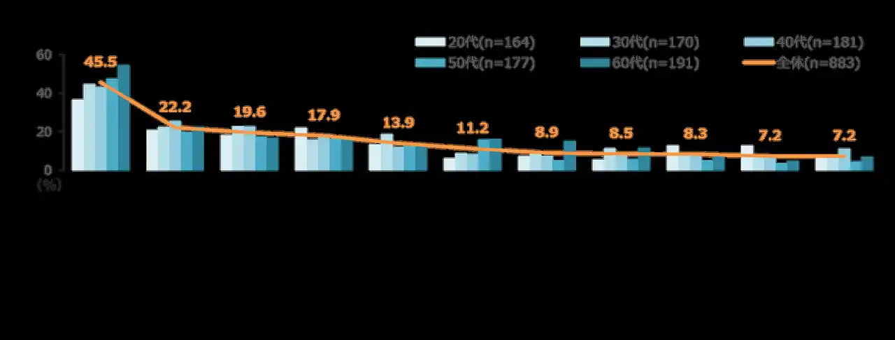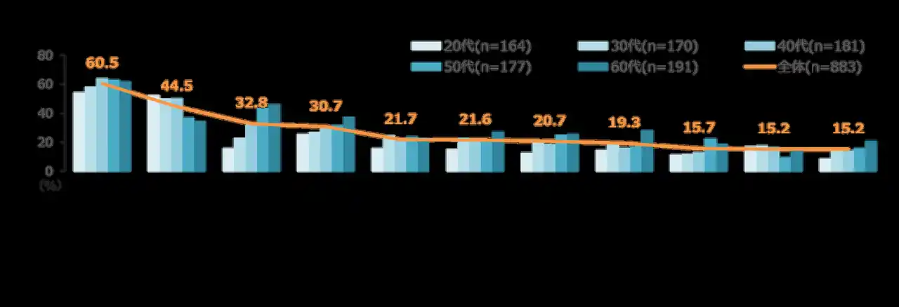50~60代は「毎日決まったメニュー」「1日のはじまりのルーティーンとなっている」といったメニューの固定化に関する項目が高い。<図3> |