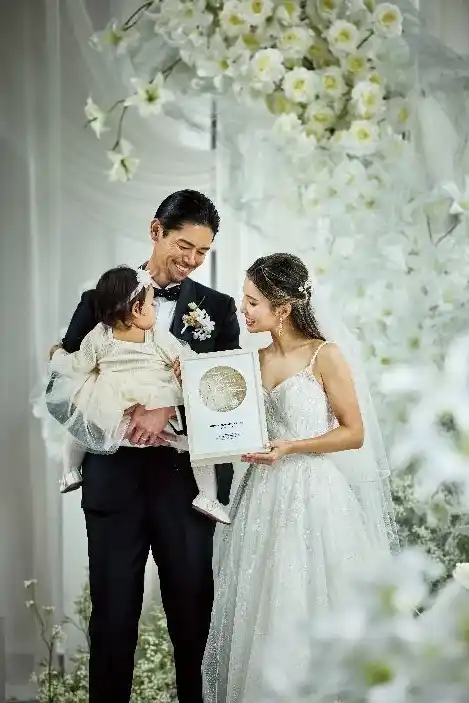 夫婦の誓いの場面では、「この世界で僕にとっての女性は1人だけです。この1人の女性と娘を幸せにするためだけにこの人生を生きていくことを誓います」とフミヤさん。カナミさんは「すぐ小言を言わないよう努力します。イライラしても顔に出さないよう努めます。綺麗な妻でいられるよう努力します」と応じ、会場には笑顔と拍手があふれました。また、長女ハンナちゃんも入場すると、今度は3人で「互いに愛し合って人生をかけて一生我が子を愛していくことをここに誓います」と力強く家族の誓いの言葉を交わしました。