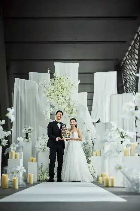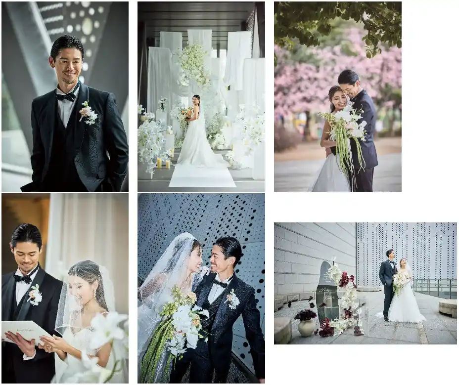 結婚リアリティーショーに出演し、2021年に結婚、2024年には長女のハンナちゃんを授かった“フミカナ”夫妻。ウエディングフォトは撮影済でしたが、「式に関してはコロナ禍の影響もあり、なかなかできなかった」(フミヤさん)ということで、今回結婚式を挙げることを決意されたそうです。入念に準備を重ね、式場は東京都現代美術館を選択。フミヤさんは「妻の好きな世界観で仕上げたいと思いつつ、任せすぎと思われたくなかった。バランスを意識して過ごした時間でした」と話します。 |